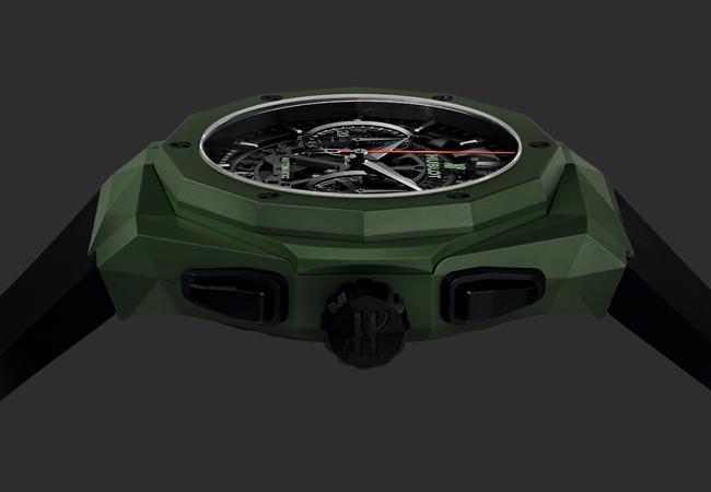 我們一直說宇舶HUBLOT是材質魔術師,因為他們除了不斷挑戰複雜結構想像力外,在材質面的發展也同樣讓人驚艷。除了發展出應該沒有正常人能想到的材質(例如魔力金、亞麻合金)外。在現有材質上,也總不斷帶來過往不曾見的景緻(像是各色藍寶石水晶,3D碳纖維),而這款Orlinski Green Ceramic重點則是在陶瓷材質上的創見。陶瓷材質發展多年,宇舶甚至不是第一、二批投入此材質發展的品牌,不過就結果論,宇舶無庸置疑地走出了不同於其他人的方向。Orlinski Green Ceramic便以立體線條的綠色陶瓷錶殼,宣示自身在陶瓷材質上的成就。陶瓷零件基本製作概念大同小異,以氧化鋯或氧化矽為基礎,在透過壓力與溫度成形。如何變化就端看各家創意。