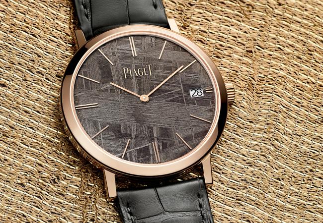 關於隕石,伯爵有段頗浪漫的說詞,「就像鑽石是地球深處的結晶紀錄,隕石則是星系誕生的結晶。」人類中外歷史中一直不乏隕石足跡,除了文史紀錄(例如左傳、漢書都有此類紀錄),據說公元前十四世紀,埃及法老圖坦卡門陪葬的匕首就是鐵隕石鍛造。可見人類對隕石的運用已有年代。但是隕石用於腕錶,則是近代才開始的事情,一般認為是2000年左右才開始的。伯爵PIAGET雖然算不上最早運用的品牌,但隕石充滿風格的紋理,搭配伯爵溫雅的設計,確實也頗為合拍。