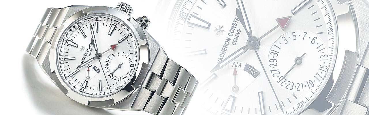 這款Overseas兩地時間腕錶是2018年錶展上所推出的。Overseas兩地時間採四針同軸指示的形式,明顯的紅色箭頭指針指示第二地時間。配置整體而言都是兩地時間錶款所常用的方式,兩個時區都用錶冠調整,比較特別的是四點位置的按鈕,一般以為是時區快調,但其實是日期快調,佈局耐人尋味。