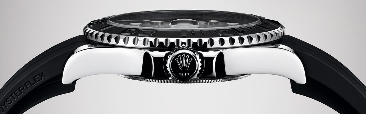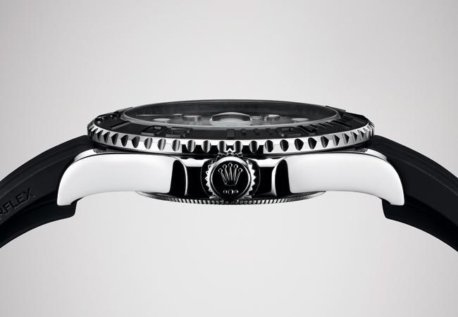 不過,這款Yacht-Master也是系列首度採用白金的貴金屬款式,白金的淡雅光澤迷人,但也說明錶款有一定的檔次。是否會帶著白金腕錶運動是一回事,勞力士依舊一絲不苟於各個細節。招牌的蠔式殼是勞力士的品質象徵,也是為了防水所發展出的必須。包括以整塊實心白金所打造的中層錶殼,加上有三角坑紋,需要特殊工具才能旋開的底蓋。錶冠也採用三扣鎖三重防水系統,這些都是出於確保殼身防水性能完善所發展。