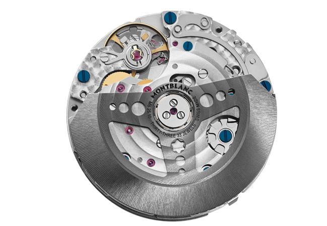 「時光行者系列自製機芯計時碼錶1500限量款」搭載萬寶龍自製計時機芯MB 25.10,其特色包括:傳統的表面修飾處理,如:日內瓦波紋、圓形粒紋、藍色螺絲以及採用黑色鍍銠鎢材質製作之全新整體式自動盤(monobloc oscillating weight),外形為方向盤設計。機芯配置傳統導柱輪、水平離合裝置、以及停秒機制,能夠有效提升時間設定的準確性。腕錶之時間讀取採時針、分針、小秒針與日期顯示,計時功能之設計採中央計時指針、三點鐘與九點鐘之計時盤,令人聯想到3-6-9計時盤設計。