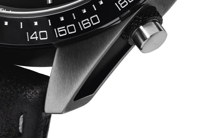 時光行者系列產品結合昔日知名的計時裝置與賽車精神,蘊含Minerva的傳承技術、陽剛活力、致勝表現、以及賽車輝煌年代的時尚風格。全新時光行者系列自製機芯計時碼錶1500限量款,採用「做舊」的精鋼材質,透過特殊的表面處理將不鏽鋼錶殼覆以黑色鍍層,接著以手工方式進行洗、刷程序,使腕錶呈現獨特的薄層與外觀。復古的外觀與黑、灰色「反熊貓式」錶盤、黑色陶瓷錶圈、黑色包銠指針以全新牛巴戈皮(磨面皮)錶帶完美契合。