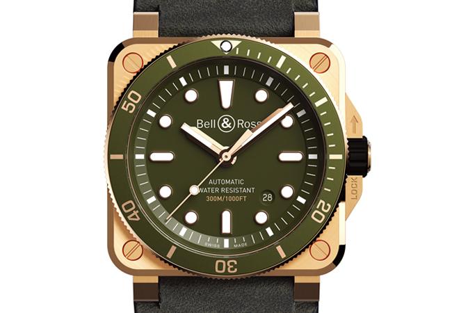 BR03-92 Diver Green Bronze,擁有銅錶的厚重感與成色,隨著時間推移養出屬於自己獨一無二的色澤,形成美麗的紅棕或灰綠色調,低調而復古的質感搭配特殊處理的真皮錶帶,讓潛水錶可以挑戰搭配優雅的洋裝或西裝,換上潛水專用錶帶,又可以進入水下世界,一錶多用,完美滿足她對錶的需求。