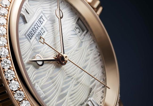寶璣鐫刻師創作獨特設計,生動展現海潮拍岸的美景。此起伏有致的圖案名為“marea”,即海潮之意;其特殊的曲線設計,與直線和圓形為主的傳統機刻雕花飾紋大相逕庭,捕捉了海浪的天然動態。海潮圖案的設計花費多月,並須為雕花車床生產特製的凸輪。這種卓爾不凡的設計由寶璣工匠以珍珠母貝生動呈現;珍珠母貝格外纖細,令此系列的面盤和機芯自動盤更顯優雅。