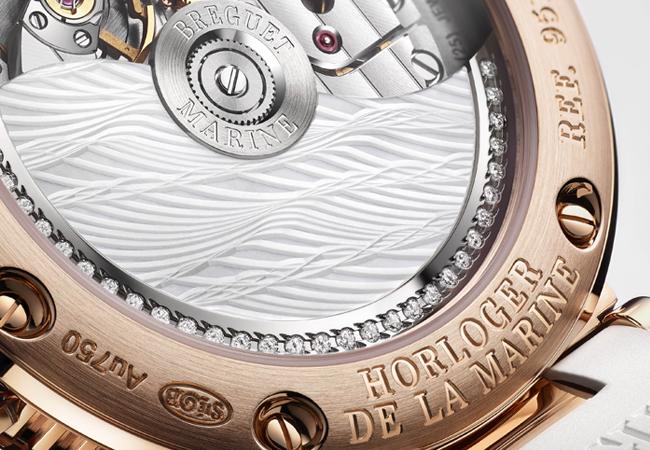 Marine Dame 9517、9518女士腕錶秉承寶璣傳統,結合精緻格調和超卓性能。腕錶由寶璣自動上鍊591A型機芯驅動;機芯厚3.41毫米,設有日期顯示。其上採用雙重手工鐫刻日內瓦波紋,令人聯想起船隻的甲板。錶殼外緣刻有“HORLOGER DE LA MARINE”(海軍御用製錶師)字樣,這源自亞伯拉罕.路易.寶璣先生於1815年所獲的法國皇家海軍御用製錶師頭銜。