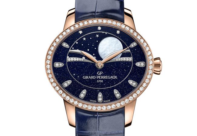 弦月、盈月、殘月抑或滿月,月相盈虧,循環往復,月亮是人類暢想中的特殊存在,也是諸多力量的源泉。貓眼系列星光夜空月相腕表的穹頂設計營造蒼穹之感,並以砂金石盡致演繹閃耀星空——月相顯示裝置旁邊以及珍珠母貝圓盤上皆可領略其璀璨星光,為整個畫面增添一份深邃神秘之感。這個表款配備專利機芯,在設計、開發、製造及修飾方面均傳承高級製表傳統。