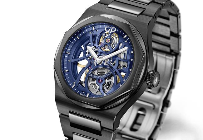神祕莫測的黑色宇宙結合地球的蔚藍色彩,陶瓷環繞迷人的鏤空機芯,創造出如雕塑般的輪廓,構成了充滿當代氣息、男士魅力、迷人自信與風格獨特的整體。Laureato桂冠系列天際行者鏤空腕表不僅具備高級複雜功能,而且彰顯精緻的裝飾藝術操詣。它具備黑色陶瓷表殼,表帶飾以黑色陶瓷鏈節,表面經啞光和拉絲交錯處理。機芯的結構因此凸顯,線條徹底展現,成就製表風格與結構上不折不扣的傑作。內涵豐富卻又輕盈通透,直線與弧線交錯,藍色內在對應黑色外在。這一切構成了Laureato桂冠系列天際行者鏤空腕表。