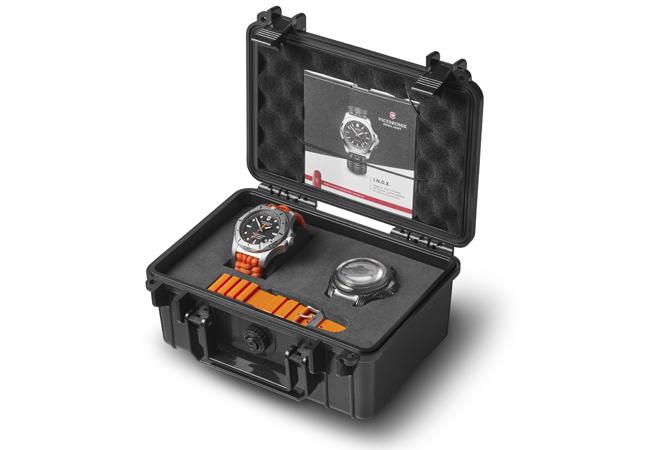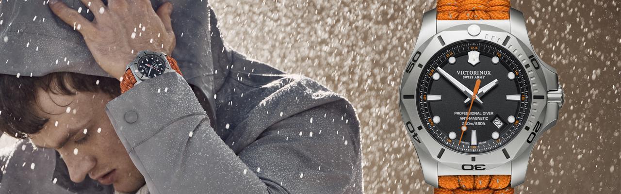 瑞士維氏VICTORINOX I.N.O.X. Professional Diver 系列演釋充滿挑戰的航海之旅。高性能腕錶設計時尚而啟發靈感,不銹鋼錶殼經噴砂處理,打造出極致的啞光錶面,效果令人讚嘆。堅固的帆船繩索和強韌的傘繩錶帶反光織帶互相交織,格外耀目。隨錶附送防撞錶盒和額外的橡膠錶帶,適合需要濕身時配戴,並配置透明水母狀防撞環及可移除的放大鏡,以便提高水底能見度。