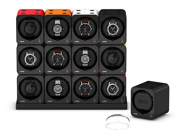 以方形為概念設計的BOXY上鍊盒,能針對不同空間需求,規劃出最適合的上鍊盒尺寸。無論是往上疊加,或是左右延伸都行,使空間獲得更妥善的運用。半圓形防塵蓋也讓腕錶多一分安全。而BOXY也是少數可以安放於保險箱中,還能使用方便的上鍊盒設計之一。
