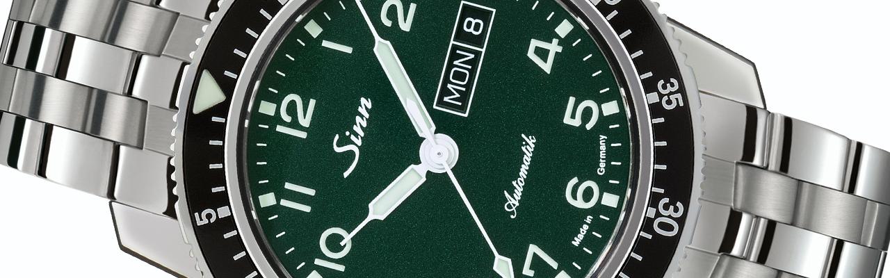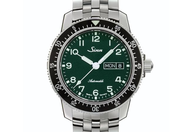 Sinn 104 St Sa A G腕錶面盤採用Sinn少有的綠色面盤設計,搭配雙向旋轉飛行外環,清楚的時間、日期與星期顯示,提供最佳易讀性。腕錶為抛光不銹鋼錶殼和雙面防眩藍寶石水晶鏡面與藍寶石水晶透明底蓋,簡潔俐落的大方線條。同樣擁有可靠的200米潛水等級防水規格。