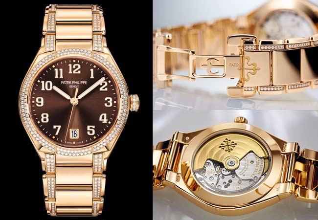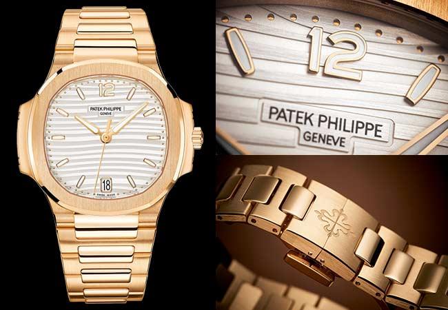 男裝的金鷹Nautilus一錶難求,女裝的7118自然也受到重視,今年新增了乳白色調面盤與金棕色調面盤的兩個玫瑰金款式。女裝款的金鷹是從1976年鐘錶設計大師尊達(Gérald Genta)的原創設計略做改變而來,女性化的細節主要表現在波浪紋的面盤上,金質時標從男裝的長方形改為左右略呈弧線的造型,巴頓式指針也較原本的棒形指針更具視覺變化。頗有現代女性剛柔並濟的美感。
