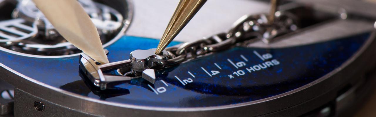 其特別之處,便在於將多處零件與船艦元素巧妙融合,最吸引人的,就是將位於面盤最上方的上鍊系統打造為起錨機的面貌,位於面盤3點的動力儲存顯示也做成犁頭式造型的船錨,當上鍊時兩者便會移動,如升降船錨一般作動,這不僅將腕錶的運轉機制與船錨機械系統做了創意的融合,在視感上也極具動態張力。腕錶採用44mm的鉑金錶殼,面盤以大明火琺瑯製作湛藍的海水面盤,其上由鉑金刻劃出船首,結合多處功能所嵌入的船艦元素設計,畫面中的船艦便如3D立體般栩栩如生地破浪而來。