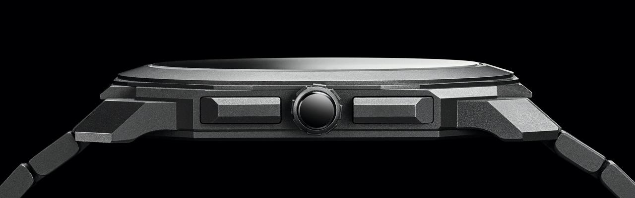 面盤6點鐘為三十分鐘計時盤、9點為小秒盤,整體格局規整,搭配色調一致的纖長時標與指針、系列家族慣例的鈦金屬錶殼與噴砂鈦金面盤,不僅視讀上清晰舒適,也流露出低調的義式優雅氣質。此錶按壓9點位置的按把可以設定當地時間,計時功能則是藉由腕錶右側的計時按把來控制,與錶殼線條平行的按把設計,讓按壓手感更順暢。而其擁有55小時動儲,加上是自動上鍊機制,以實戴性來說,也相當足夠。
