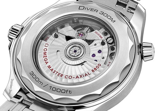2018年時此系列逢25週年,OMEGA為其推出一系列改款,除了全面改裝陶瓷錶圈和陶瓷面盤,內搭機芯也使用OMEGA目前最高規格的主力機芯8800 Co-Axial Master Chronometer。此錶即為其中一只款式,連同面盤也採用陶瓷製成的作法十分有趣,面盤上可見以雷射鐫刻出來的波浪紋路,此設計是早期系列歷史作上的經典元素,在此運用為錶款增添了些原汁原味,視覺上也更加強層次感。陶瓷面盤為白色,搭配黑色陶瓷錶圈,用色對比鮮明,黑色陶瓷錶圈上還特別使用了白色琺瑯製作潛水刻度,是較罕見的作法。