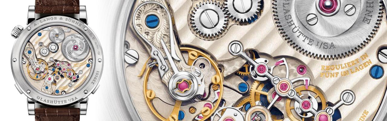 因此廠方將過去曾運用在Lange 31上的恆定動力概念,重新運用在本系列機芯中,以便獲得穩定且精確的能量。朗格特別設計的專利恆定動力擒縱系統位於三番輪的上方,每當恆定動力上方的Y字型擒縱叉產生偏移時(尾端連接四番車上的凸輪),發條盒會將動能傳送至恆定動力系統中的藍色游絲,然後再傳送至後續的擺輪游絲。