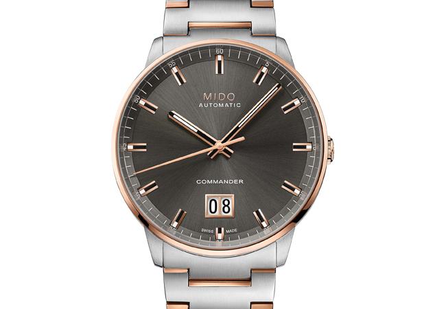 2018年,瑞士美度表MIDO特別推出Commander Big Date香榭系列大日期窗腕錶,紀念品牌誕辰100週年的大日子。此次美度表再續輝煌,只為都會紳士打造全新復刻格調,全新推出三款Commander Big Date香榭系列大日期窗腕錶:煙煤灰色PVD處理不鏽鋼款,自面盤延伸至錶殼、錶帶,擁有如手鐲般華美的光澤。