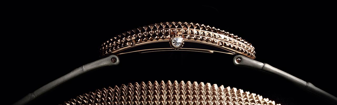 Baignoire腕錶承襲此一美學傳統,且青出於藍,黃K金橢圓形感性造型點綴腕間;至於白K金款式中,延伸至錶殼下方的濃密「Godron」圓紋綴有梅花形鑲嵌鑽石,即使是隱藏部分亦追求極端精緻。
