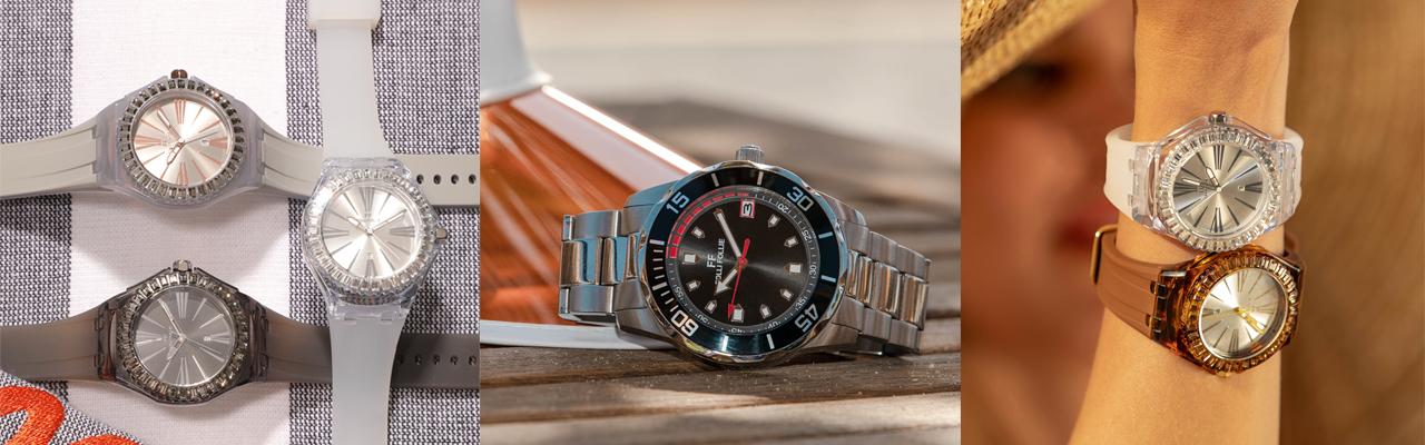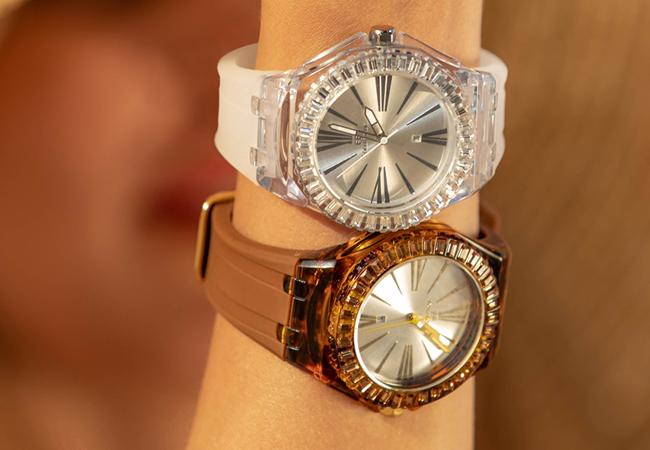 Folli Follie以休閒風格腕錶,獻給積極且充滿活力的現代女士。Lifetime Ora與Rainbow Time兩款腕錶,不僅能搭襯海灘、泳池造型,亦適合於夏日各歡樂場合配戴,展現充滿熱力的時尚樣貌。Lifetime Ora腕錶系列從日常中值得紀念的時刻為靈感,以希臘文「Ora(意指小時)」一詞命名,風格中性而雋永,錶面綴以紅色幾何細節,充滿巧思。