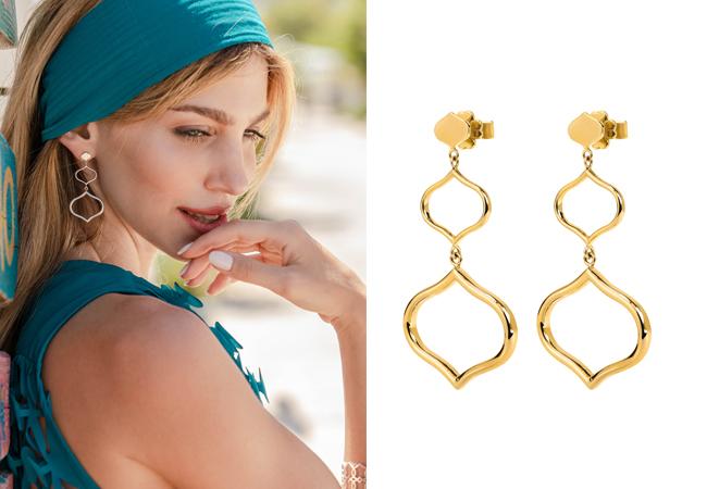 Folli Follie今年春夏全新推出的Chic Princess與Mod Princess系列輕珠寶,流暢簡潔的線條,在現代感設計中注入異國風情元素,備有多款垂墜式耳環、長項鍊與寬版手環,都讓海灘造型能更搶眼,亦適合層疊配戴,增添飾品的份量感。不論是在岸邊享受陽光,還是夜晚的雞尾酒派對,都能盡顯時尚態度,成為最亮眼有型的女主角。