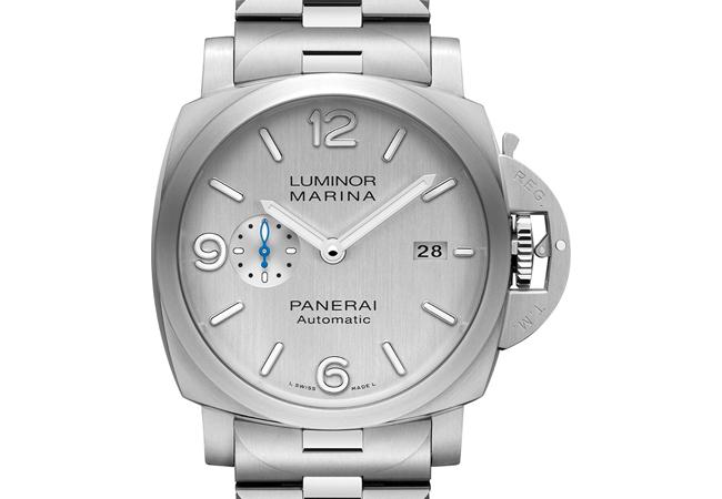 沛納海PANERAI錶款重新推出具有錶冠護橋造型的精鋼鍊帶,更貼近錶款的設計風格; 此外,沛納海也發表首次使用直紋磨砂處理的全新銀色面盤錶款,以及具有霧面放射紋的全藍色面盤錶款。