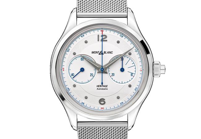MONTBLANC 傳承系列單按把計時碼錶。向1940-1950年代的Minerva腕錶致敬之作。直徑42mm/不鏽鋼錶殼/參考價NTD 171,200