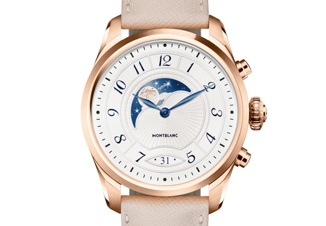 MONTBLANC summit 2智能錶。結合機械錶造型與智能錶功能的新一代穿戴裝置。直徑42mm/金色PVD不鏽鋼錶殼/參考價NTD 33,000