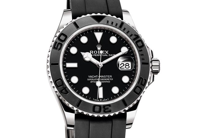 ROLEX Yacht Master 42。專為海上活動而生的經典航海錶,高科技陶瓷旋轉錶圈。42mm/18K白金錶殼/參考價NTD 923,500