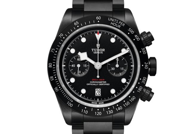 TUDOR Black Bay Chrono Dark。慶祝2019橄欖球世界盃,以及與紐西蘭國家橄欖球隊黑衫軍合作所製作的限量錶款。直徑41mm/黑色PVD不鏽鋼錶殼/參考價NTD 189,000
