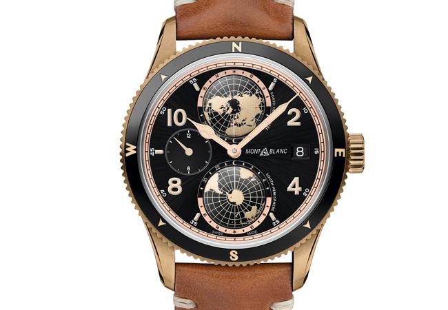MONTBLANC 1858 Geosphere世界時區腕錶。慶祝Minerva錶廠創立160週年,為登山者而製作的錶款。直徑42mm/不鏽鋼錶殼/NTD 181,300