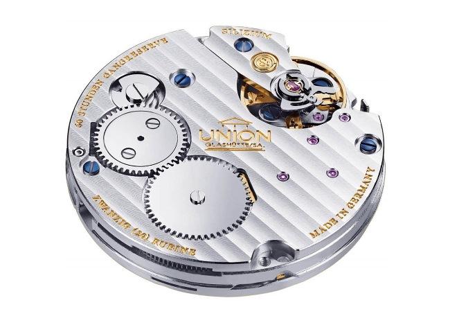 但是,ETA機芯廠會專門替Union錶廠開發全新機芯嗎?當然不可能(成本太高),因此UNG-58.S1機芯與UNG-56.01機芯的基礎,是來自ETA 7750自動計時機芯,因為拆除自動上鍊與計時結構之後,ETA 7750機芯變成一枚手動上鍊機芯,而且還擁有3/4夾板的設計。所以廠方在夾板上施以華麗波紋處理,便成為一枚「偽」德製機芯,不過因為成本的關係,廠方沒有使用藍鋼螺絲黃金套筒與鵝頸式微調裝置。