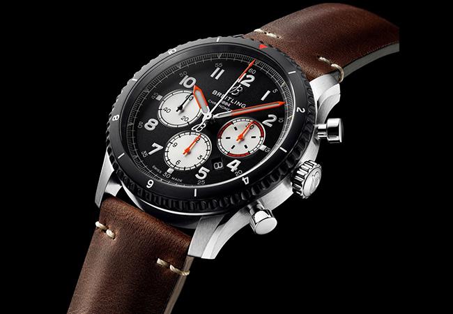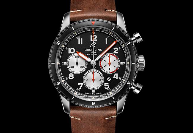 而百年靈此款Aviator 8 Aviator 8 Mosquito便是向這台傳奇轟炸機致意。錶款結合AVI型航空腕錶(復刻1950年代的Co-Pilot),以及更早期品牌旗下專為民用或軍用飛航製作飛行錶與儀器的「Hult航空部」所設計的機用計時儀器的特色,展現有別於現今的古典感。採用典型的三眼計時碼錶佈局,無論判讀或是操作都相當便利。旋轉錶圈可作為短時間的分鐘計時使用。黑底白針的面盤高反差配色,也有益於提高判讀的清晰度。面盤三點鐘位置的30分鐘計時盤,以及指針上的紅色裝飾,則呼應著當年蚊式戰機機身上的隊徽標誌。