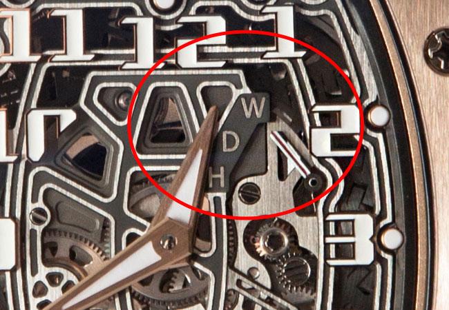 RM 67-01淋漓盡致的鏤空工藝搭配新穎的錶盤構造、三件式錶殼、以至時分指針,都極為吸睛。數字時標以實心金屬製造,並安裝在與機芯相連的兩條相互連接的堅固鈦金屬軌道上。為了豐富層次感,金屬雕刻的時標上塗覆Luminova夜光塗料,以利於夜間讀時。此次,垂直日期窗位於錶盤右側的五點鐘位置,外框同樣以Luminova夜光塗料勾勒。