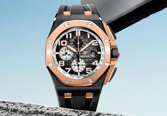 雖然陶瓷材質運用在腕錶上,已經行之有年,但是直到2010年,愛彼才在皇家橡樹系列錶款中,首次推出全陶瓷錶殼的阿諾傳承紀念錶款;至於全面導入生產,則是在2013年,這一年愛彼推出全陶瓷錶殼的44毫米皇家橡樹離岸型自動計時碼錶。