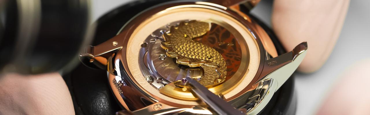 華人神獸入題 雅克德羅浮雕祥龍時分小針盤腕錶