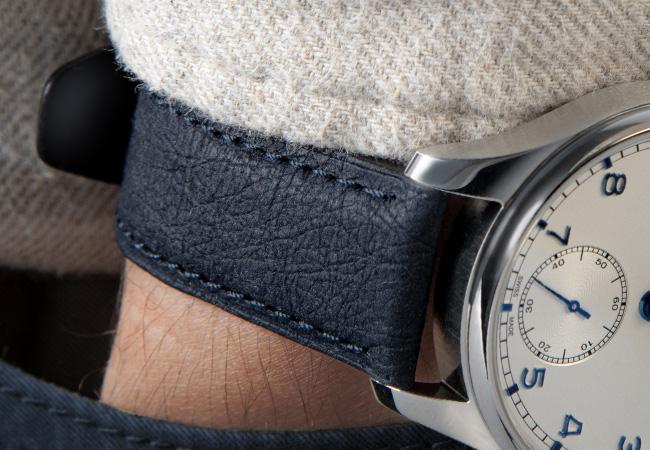 TimberTex錶帶的製造需要經歷60多個步驟,工藝技巧在過程中扮演關鍵角色。同時,更採用再生超細纖維襯墊提升舒適感,並以再生紗線精心處理,成為另一種高雅又易於佩戴的非皮革錶帶選擇。這些錶帶也經過內部和外部測試,符合IWC萬國錶所有品質標準,不但極為耐用,更可防水,浸過水後不會出現受損痕跡。