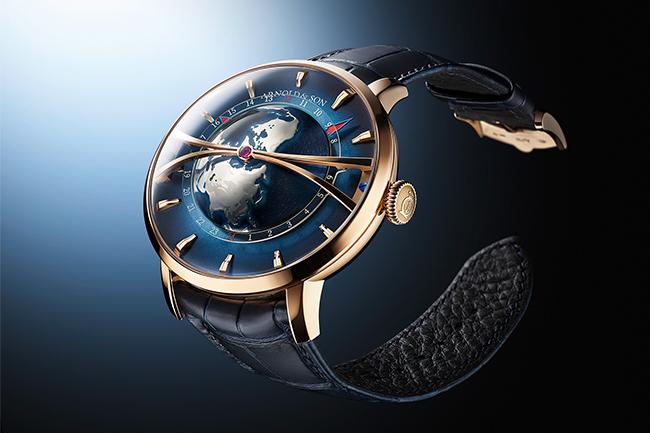 世界時區腕錶中,瑞士亞諾表Arnold&Son以Globetrotter獨特3D立體世界時區設計,和其他品牌劃開了差異性,而此次更是推出限量珍藏版-Globetrotter Gold,「大旅行家世界時區限量珍藏版」,不同於往的設計,於時標及海洋之處添加Super-LumiNova夜光塗料,讓腕錶整體呈現更富層次,另有精鋼版可供選擇。