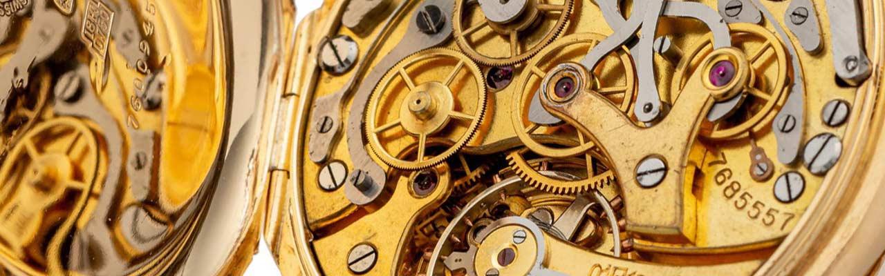 其他附註:直徑45.5mm 18K黃金錶殼,約1925年製,17法分手動上鍊機芯,計時碼錶。琺瑯面盤、將官式掀背底蓋。