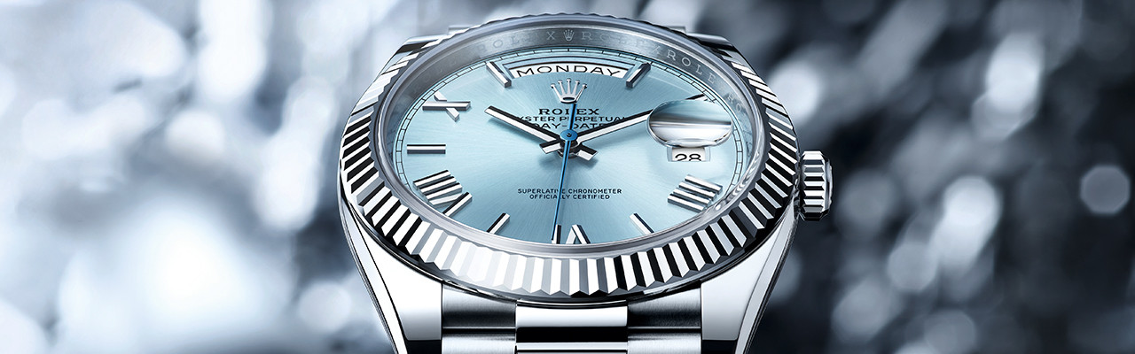 喜歡冰藍面的錶迷也可以考慮今年(2022)最新推出的Oyster Perpetual Day-Date 40(蠔式恒動星期日曆型40)950鉑金款。Day-Date錶款素有總統錶的美譽,許多政界要人都曾戴過這只錶款,新款Day-Date 40配備勞力士於2015年推出的3255型機芯,面盤12點位置可見到標誌的星期顯示。鉑金Oyster Perpetual Day-Date過去都是光圈或是鑲鑽錶圈,今年則是首次搭配三角坑紋錶圈,這次更是搭配上清爽的冰藍色面盤。