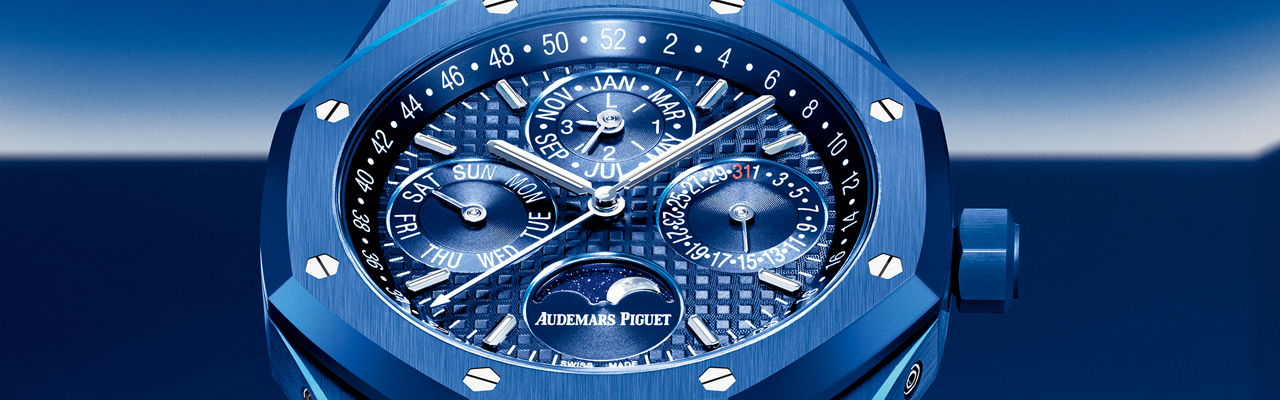 在今年第三季,愛彼AUDEMARS PIGUET則是發表首款使用藍色陶瓷錶殼鍊帶的Royal Oak皇家橡樹系列萬年曆,這也是品牌繼2017年與2019年的黑陶瓷、白陶瓷萬年曆錶款後的最新力作。雖然愛彼AUDEMARS PIGUET是最早運用不同材質來製作錶殼的錶廠之一,但是直到2011年才首次採用陶瓷材質製作錶殼,其原因在於,要使用陶瓷材質打造出Royal Oak皇家橡樹複雜錶殼與外觀質感,需耗費大量的製作工序。
