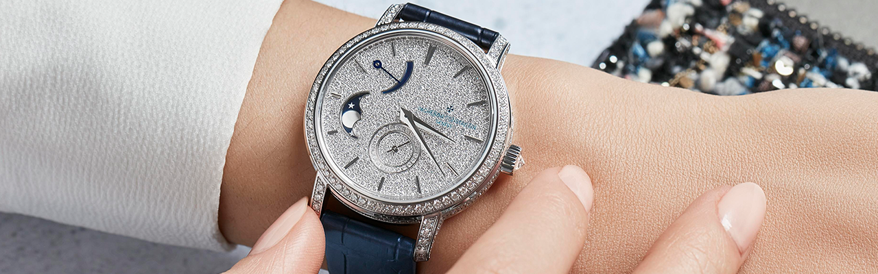 江詩丹頓VACHERON CONSTANTIN全新Traditionnelle月相腕錶以精湛珠寶技藝,喚醒月相顯示的浪漫詩意。全新珠寶款式經過精巧的煥新設計,確保整體比例協調勻稱。