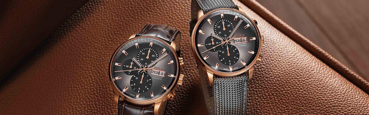 全新Commander香榭系列漸層計時碼錶特別版通過透明背底可觀測其精雕細刻的機芯,採用藍鋼處理螺絲,自動盤飾有日內瓦波紋和MIDO標誌,細節之處無不凸顯精湛的製錶技藝。MIDO Caliber 60全自動上鍊機芯具有卓越的多功能計時功能,並提供可達60小時動能存儲。防水深度50米。建議售價NT$64,600。