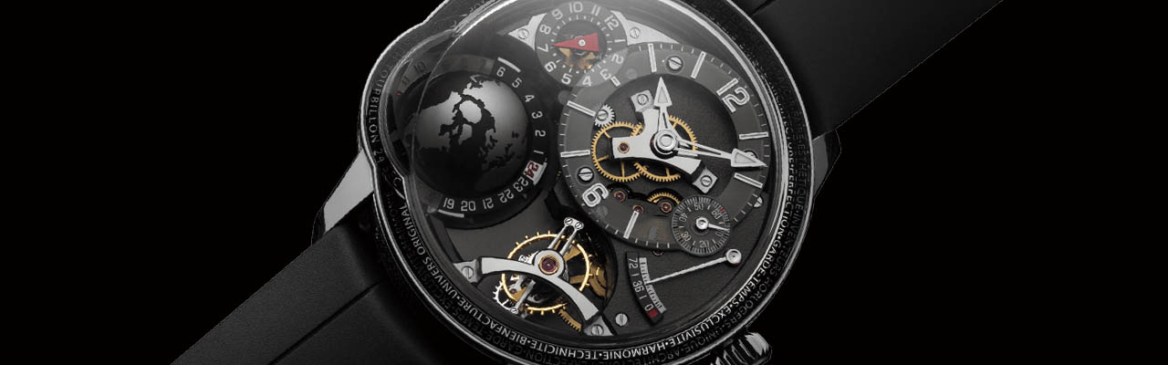 25度24秒傾斜陀飛輪、球體地球儀指示的世界時區,高珀富斯GREUBEL FORSEY以此打造複雜時區腕錶GMT Earth。 這系列將邁向尾聲,全黑身形的最終版本,低調配色卻又搶眼的令人印象深刻。