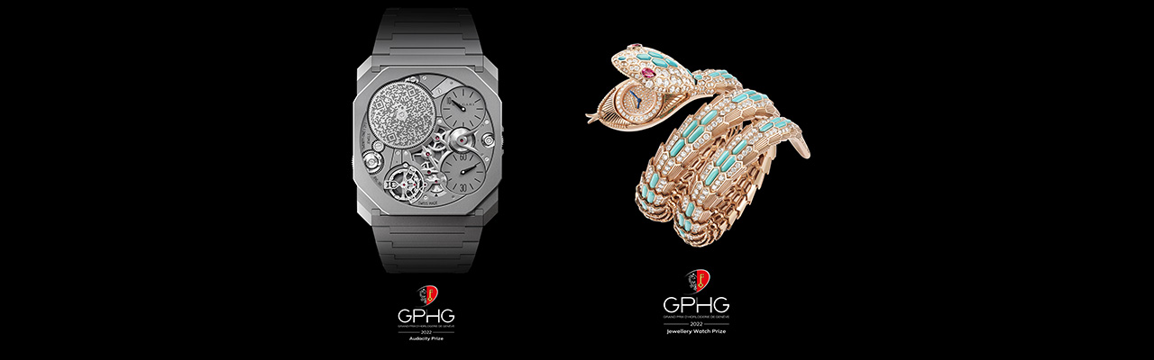 2022年度的日內瓦鐘錶大賞(Grand Prix d’Horlogerie de Genève,GPHG) 盛大舉行。在本屆大賞中,評審團來自媒體、社群平台及零售業所組成的30位鐘錶業界專家,經由評審團評比,由締造極限紀錄的Octo Finissimo Ultra超薄腕錶榮獲無畏獎 (Audacity Prize) 與昇華BVLGARI寶格麗頂級珠寶工藝與製錶工藝的Serpenti Misteriosi頂級珠寶神秘腕錶獲得珠寶腕錶大獎。