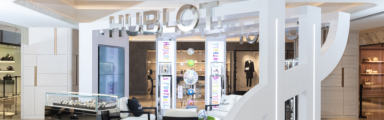 宇舶全明星世足快閃店以穿透式的白色樑柱,建構明亮舒適的賞錶環境,充滿活潑色彩的「宇舶愛足球」(HUBLOT LOVES FOOTBALL) 標誌,傳遞足球運動的活力與積極向上精神,以及宇舶和球迷的熱情。巨型宇舶H標誌猶如精神指標,搭配吸睛的足球牆與賽事專用裁判鐘,滿滿對足球的熱愛貫穿全店!讓足球迷們能以此為據點,不僅一同瘋世足,更成為不可錯過的限時打卡聖地!