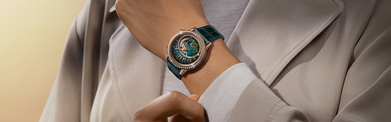 動植物在亞洲文化中極具象徵意義,被賦予某種特殊力量或特質,而自然風景亦在亞洲藝術歷史中佔據重要地位。數百年來,眾多藝術家深入研究花草動物的造型與姿態,以細緻入微的手法精準地重現其迷人風采。花鳥畫(在日本稱為「kachōga」,在韓國稱為「Hwajohwa」)的出現,見證著自然景物畫發展至巔峰,即使繪畫主題並不僅限於花卉或禽鳥,而且此兩項元素亦不一定要同時出現。積家設計師和珍稀工藝(Métiers Rares®)工坊的藝術家運用漆藝、微繪和寶石鑲嵌等超凡手工技藝,在新款時計的錶盤上演繹此藝術傳統。