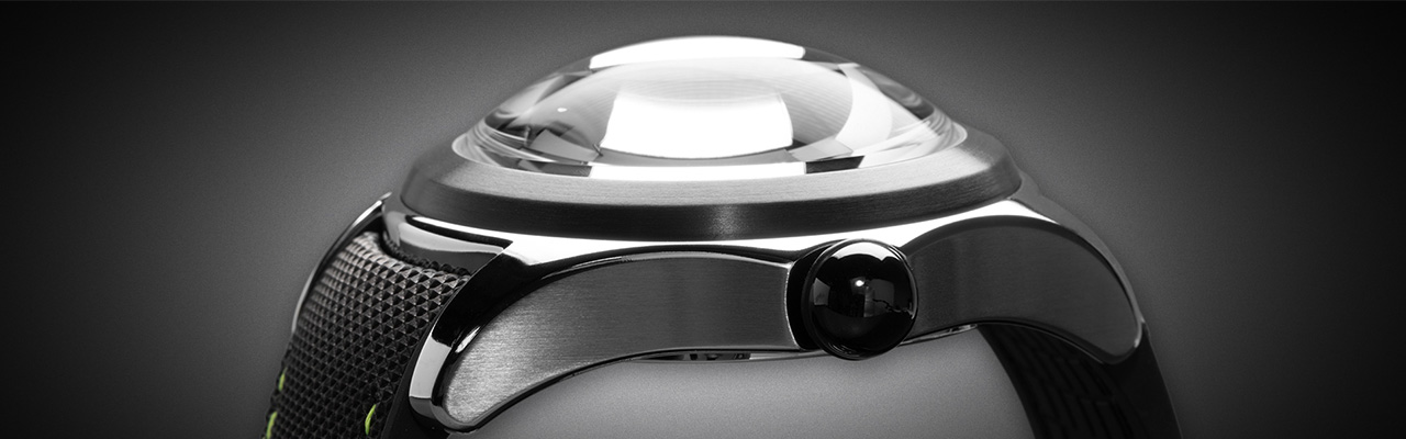 Bubble 47中置陀飛輪的錶面設計看似簡單,但實際上它是瑞士高級製錶工藝的完美示範。陀飛輪裝置位於錶盤中央,這設計需要機芯作出線性構造,技術難度極高。此精密裝置採用非弧型擒縱叉,中置陀飛輪令人過目難忘。腕錶不設指針,小時和分鐘刻度設於兩個錶盤之上,兩個三角形標記取代指針,遊走錶盤之間以顯示時分;在超厚的拱形玻璃錶鏡下, 陀飛輪顯得更為突出,清楚呈現其運行時的姿態。此款陀飛輪曾推出過顔色配搭有藍、黑和玫瑰金等幾個版本。