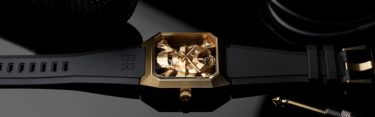 Bell & Ross創意總監Bruno Belamich一直鍾情於前衛技術,在2020年設計了極具未來派氣息的Cyber Skull版本。這錶個性複雜的腕錶提供了前衛的設計,可見日本傳統摺紙工藝的影子,雕塑般的錶殼又令人想起雷達也偵測不到的隱形戰機的機身形態。全新Cyber Skull青銅腕錶沿用凌厲線條及斜角打磨的錶殼設計,金色骷髏頭帶點搖滾味道, 佩戴在搖滾巨星腕上也入型入格。