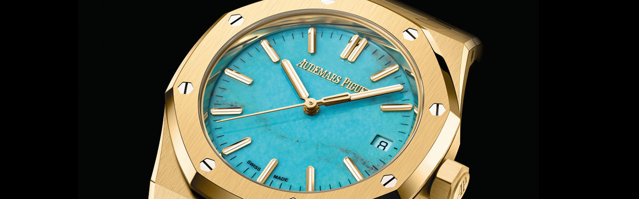 瑞士高級製錶品牌愛彼AUDEMARS PIGUET為設計升級的Royal Oak皇家橡樹系列推出全新37毫米自動上鏈腕錶,以18K黃金搭配光彩奪目的天然綠松石錶面,兩種珍稀質材的組合綻放出前所未見的華麗光彩,為錶壇首例。綠松石是一種稀有的寶石,能釋放正面的頻率能量,三千年來一直是珠寶界鍾愛的材質,如此稀世珍品自然備受Royal Oak皇家橡樹系列重視。