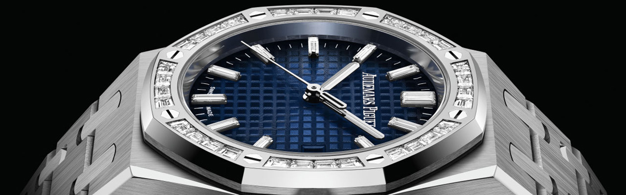 瑞士高級製錶品牌愛彼AUDEMARS PIGUET為Royal Oak皇家橡樹系列推出三款全新的18K白金腕錶,採用全新煙燻藍色調的Grande Tapisserie大型格紋錶面,包括Royal Oak皇家橡樹系列34毫米和37毫米自動上鏈腕錶,以及一款38毫米自動上鏈計時碼錶。三款新作的錶圈上均鑲嵌長方形切割鑽石,從Royal Oak皇家橡樹系列多面錶殼與錶帶的光影變換中,閃耀出萬般靈動的光彩。