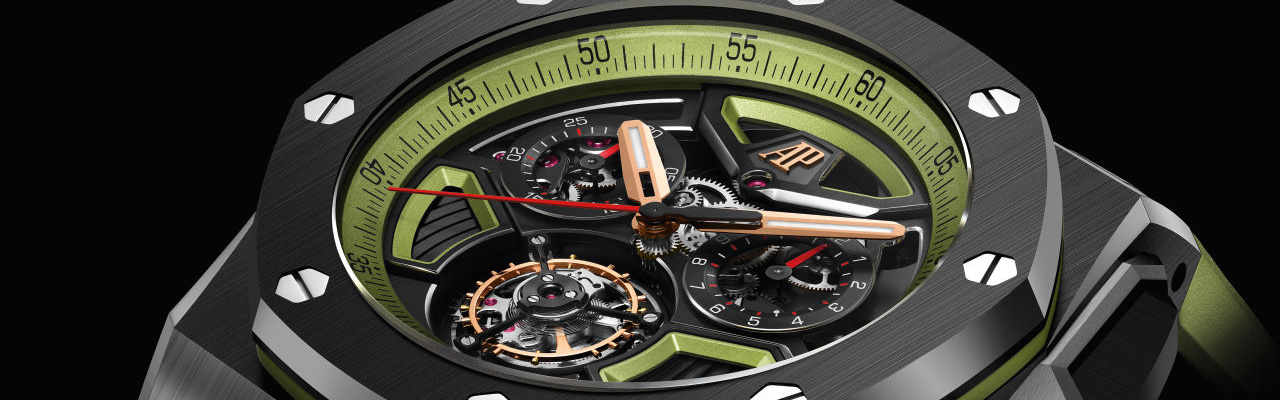瑞士高級製錶品牌愛彼AUDEMARS PIGUET推出Royal Oak Offshore皇家橡樹離岸型新作:此款由黑色陶瓷製成的自動上鏈飛行陀飛輪飛返計時碼錶,從亮眼的綠色調之中,展現出微型機械的立體結構。這款運動型腕錶集復雜工藝與尖端技術於一身,另配備了可自行更換的綠色橡膠錶帶。時值Royal Oak Offshore皇家橡樹離岸型系列問世30週年之際,品牌特別推出這款限量發行100枚的全新錶款,無論就材質或色彩而言,再次展現登峰造極的工藝。